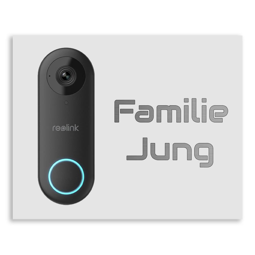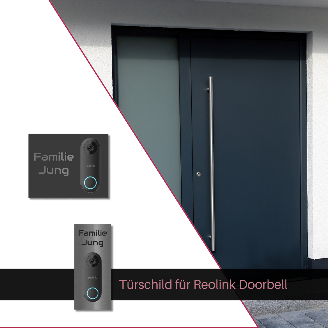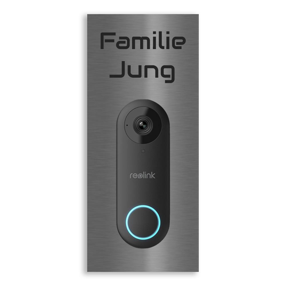 Edelstahl Dekorschild (Rahmen) für "Reolink Smarte Video Türklingel") Oberfläche Weiß RAL 9016 oder Anthrazit RAL 7016 pulverbeschichtet oder Edelstahl gebürstet