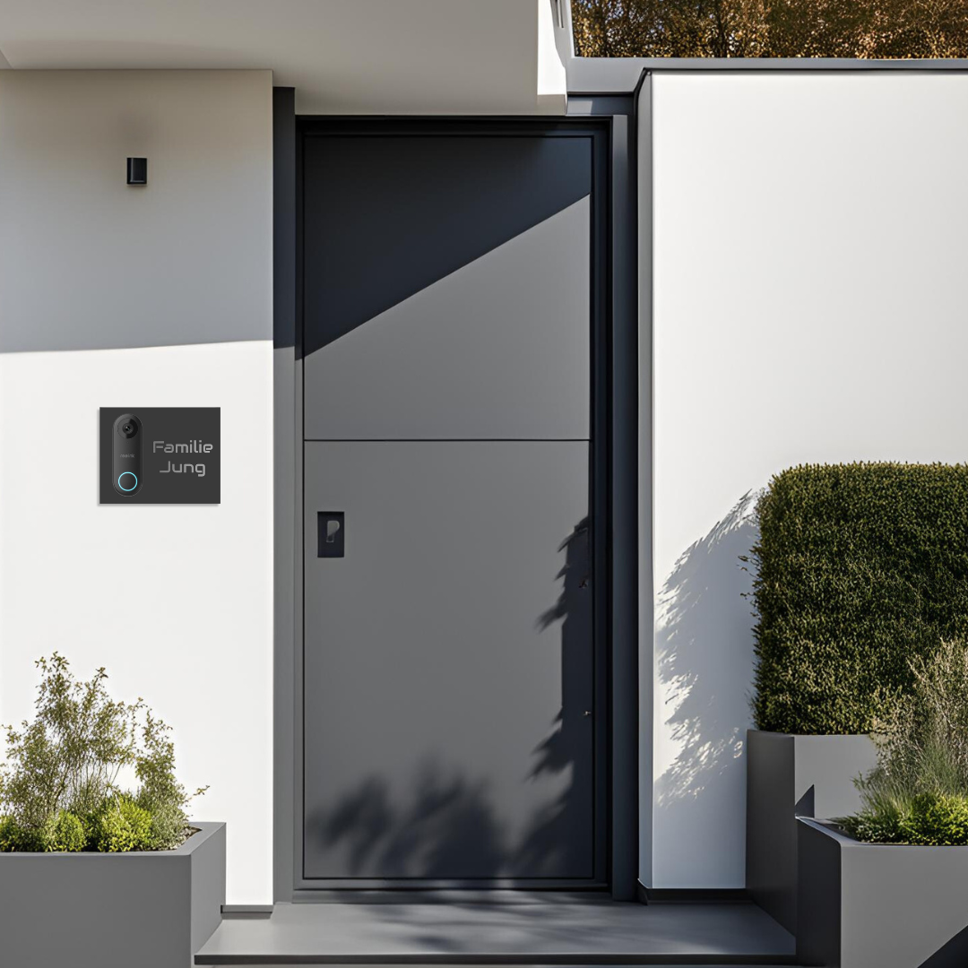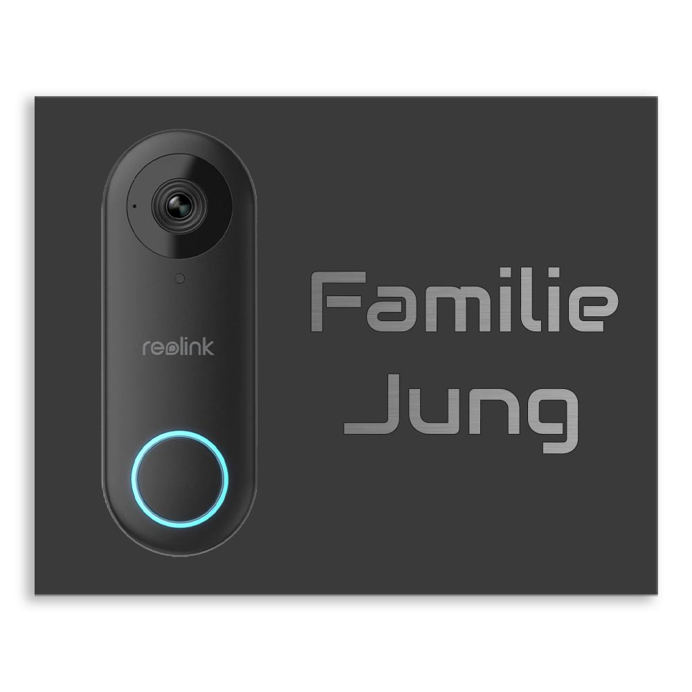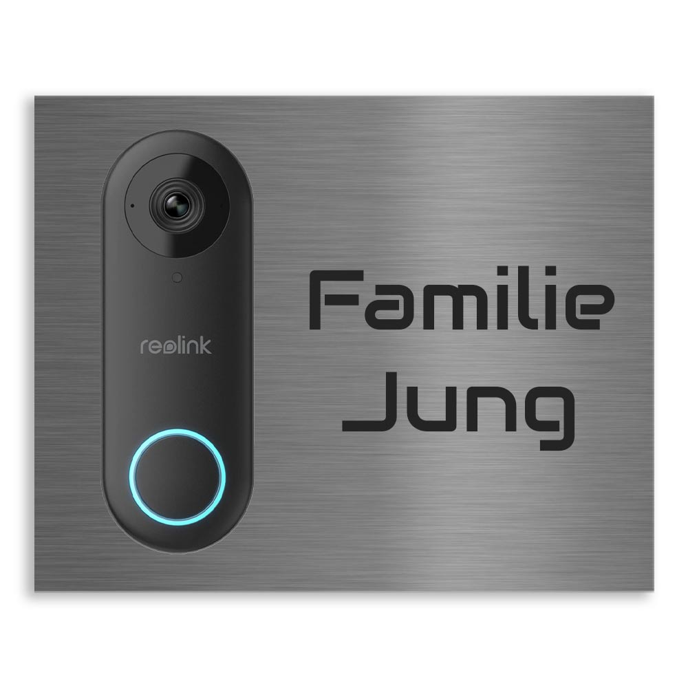 Edelstahl Dekorschild (Rahmen) für "Reolink Smarte Video Türklingel") Oberfläche Weiß RAL 9016 oder Anthrazit RAL 7016 pulverbeschichtet oder Edelstahl gebürstet