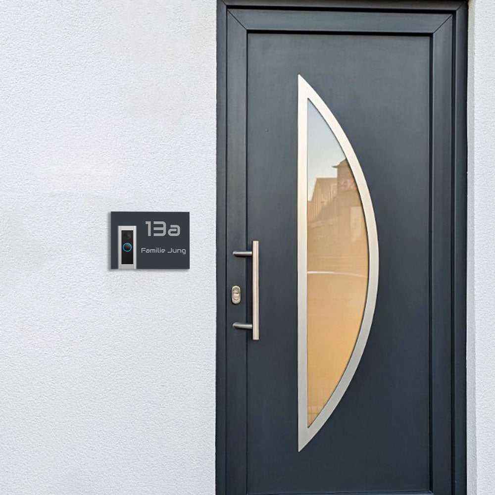 ✔️EDELSTAHL TÜRSCHILD mit passendem Ausschnitt z.B. für Ring Video Doorbell PRO 2 (die Ring Türklingel ist nicht im Lieferumfang enthalten)