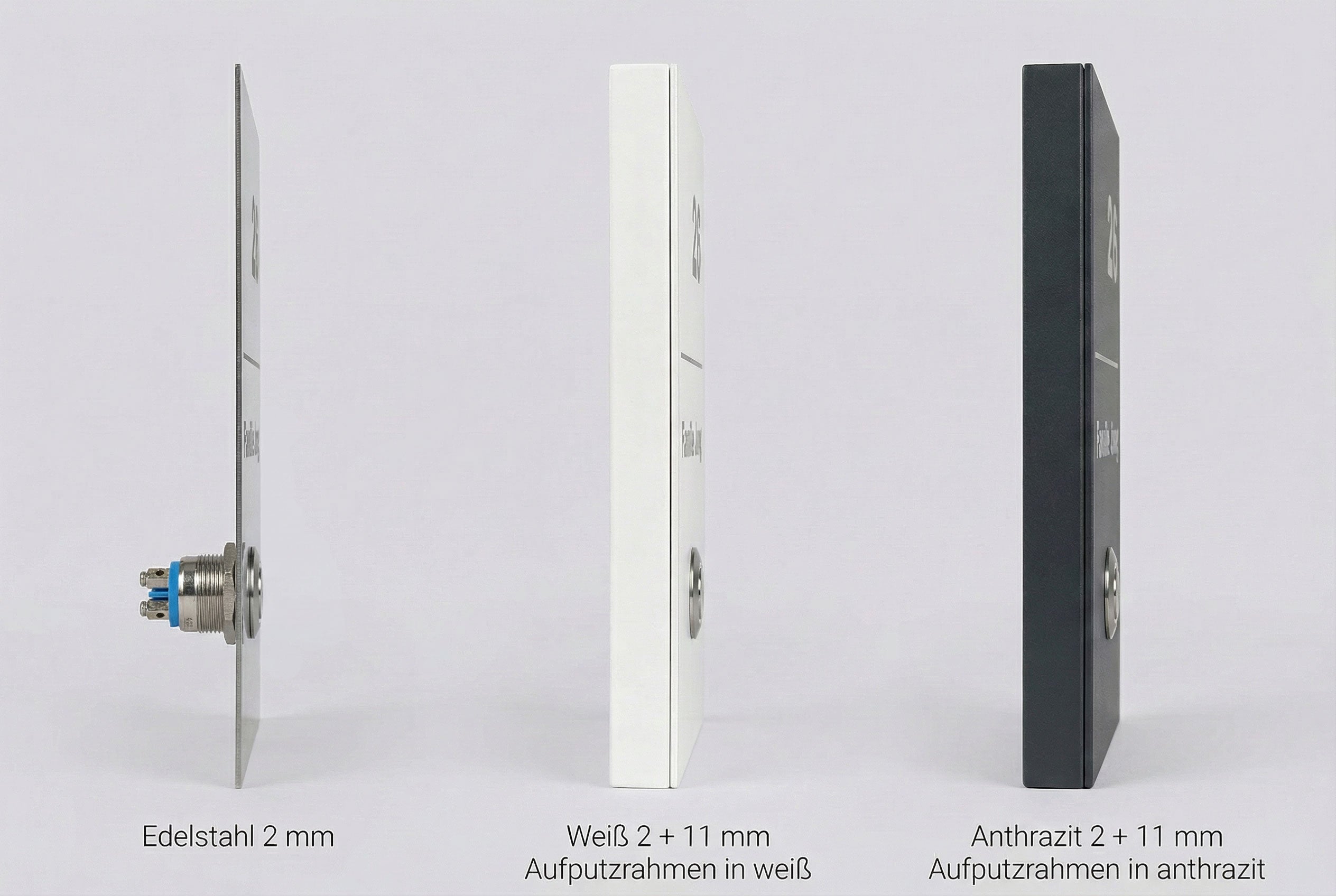 - Oberflächenoptionen: Edelstahl gebürstet oder RAL 7016 anthrazit pulverbeschichtet