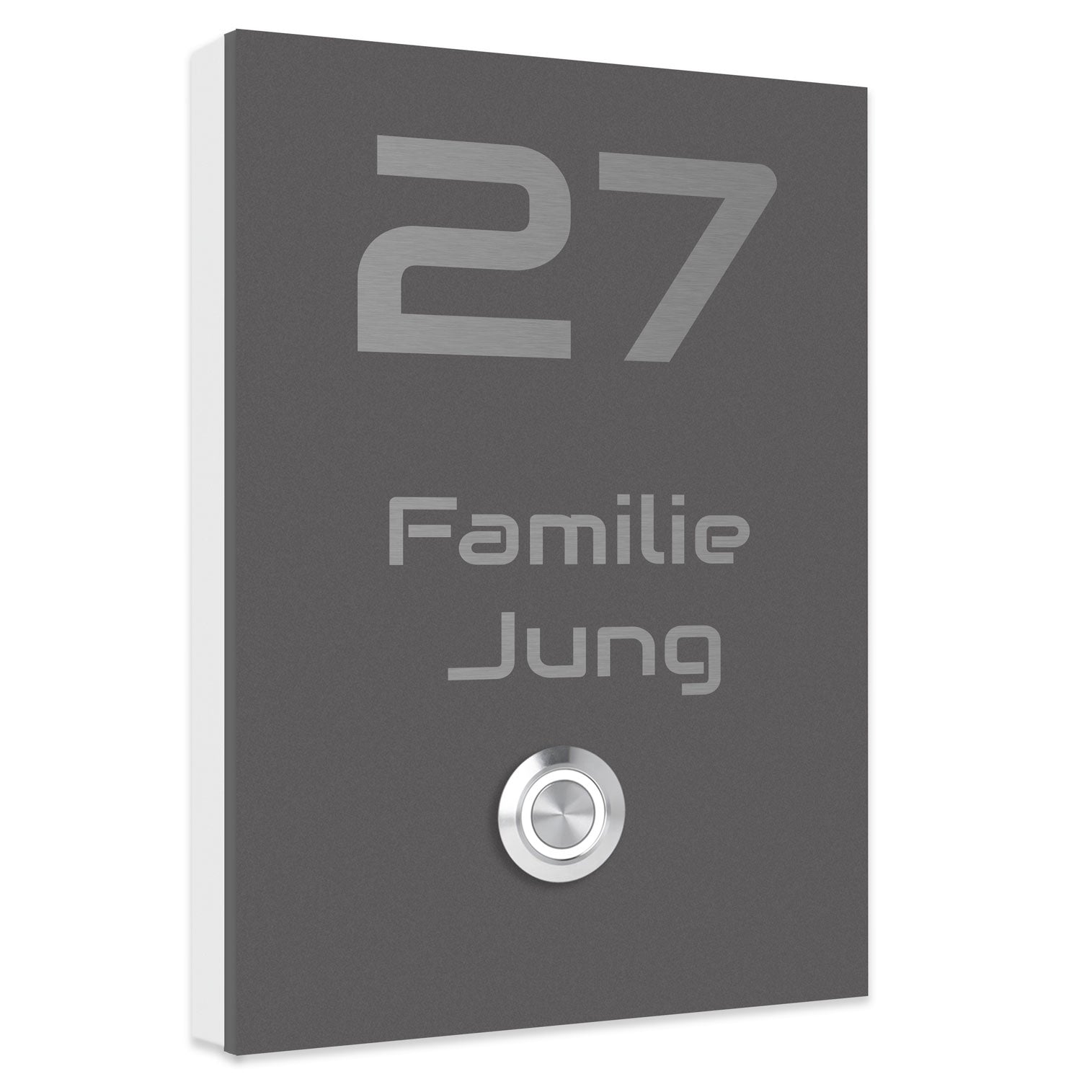 Wahlweise als Aufputz Türklingel mit Aufputzrahmen Wir haben für unsere Aufputzrahmen einen speziellen Kunststoff gewählt der robust ist und unseren hohen Ansprüchen an Belastbarkeit entspricht. Er wird z.B. in der Industrie für Karosserieteile und bei der Produktion von Bauteilen für Elektrogeräte wie Waschmaschinenblenden sowie für Oberflächen von Fensterrahmen eingesetzt. Der Aufputzrahmen ist 11 mm flach und in den Farben Anthrazit oder Weiß wählbar.
