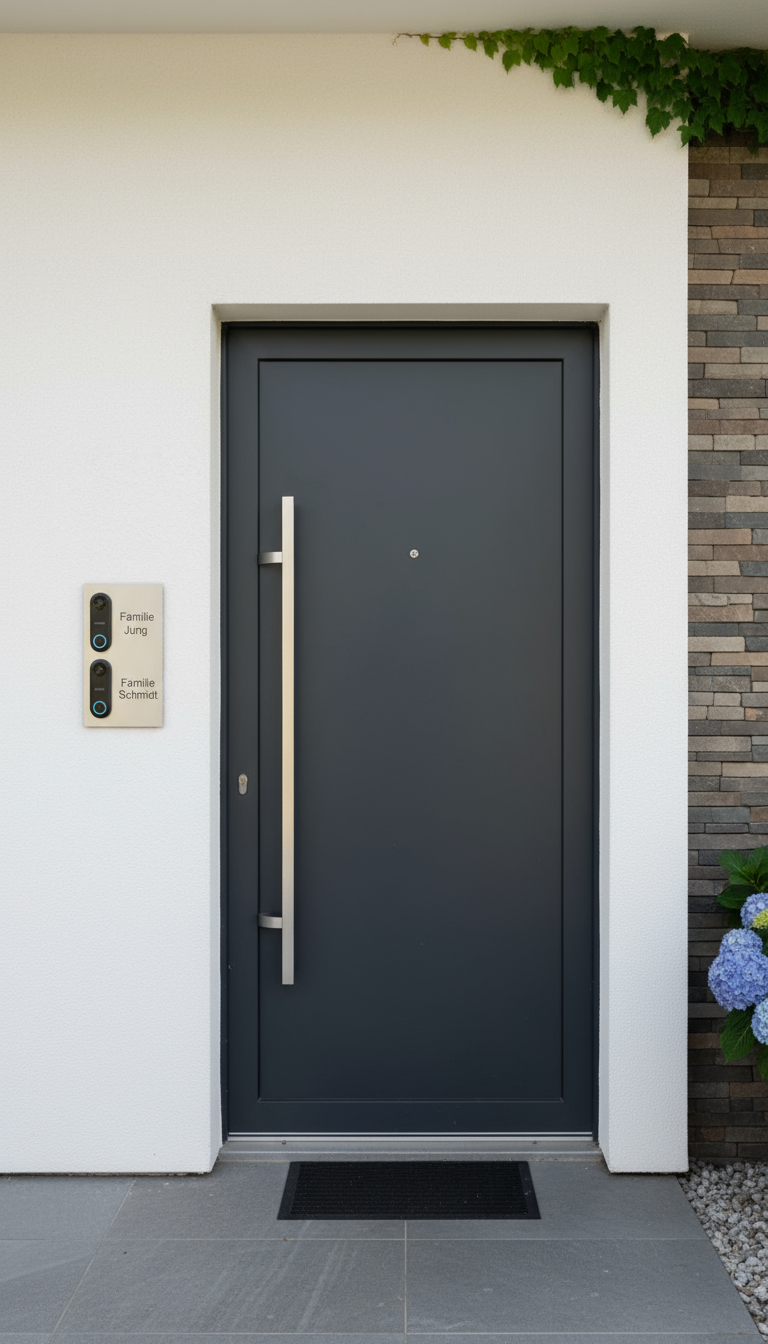 Perfekt für zwei Türklingeln - Dieses elegante Türschild aus V2A Edelstahl bietet Platz für zwei Reolink Türklingeln und verleiht Ihrem Eingangsbereich einen modernen, professionellen Look.