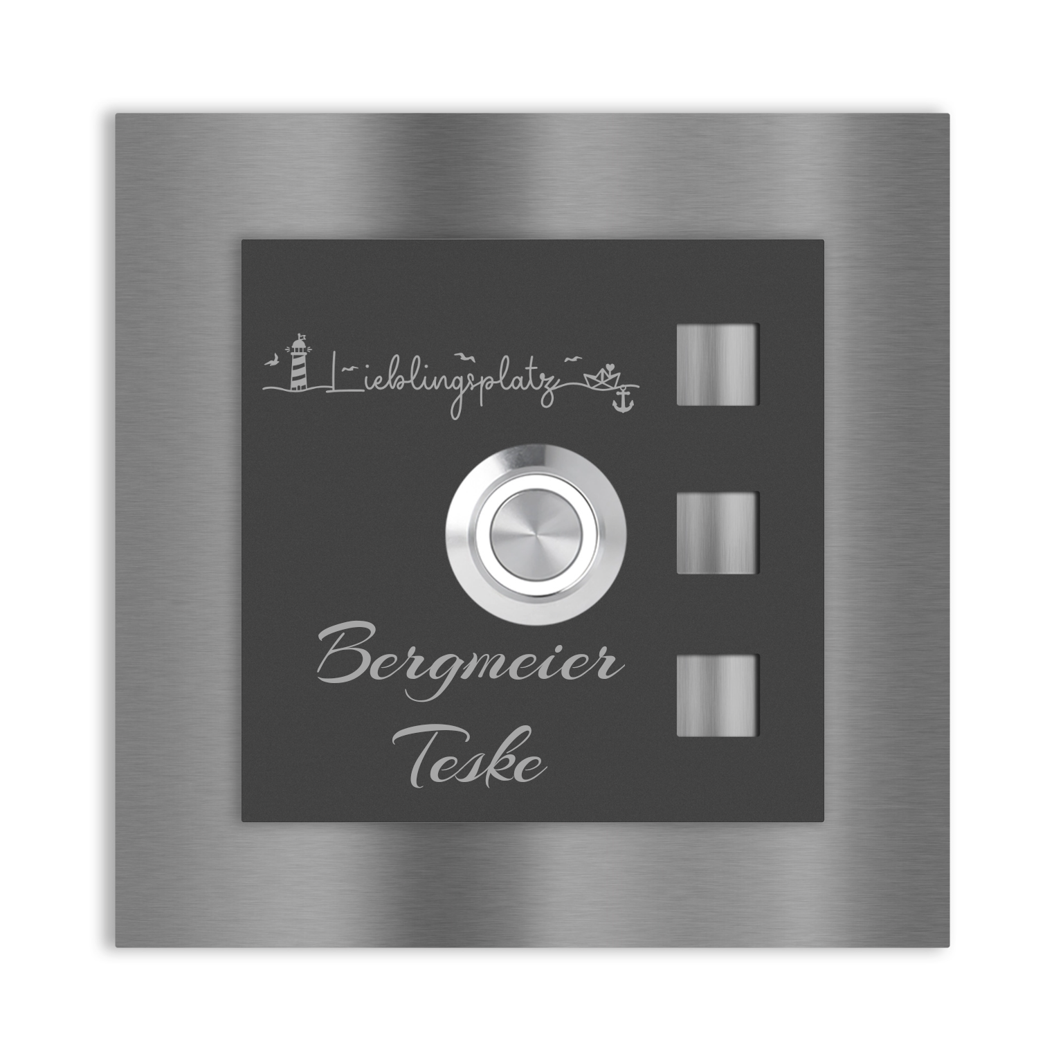 Manhatten 10 x 10 cm Edelstahl (V2A) Türklingel - mit Gravur - Anthrazit / Weiß / Edelstahl und Edelstahl gebürstet - LED - Aufputz / Unterputz
