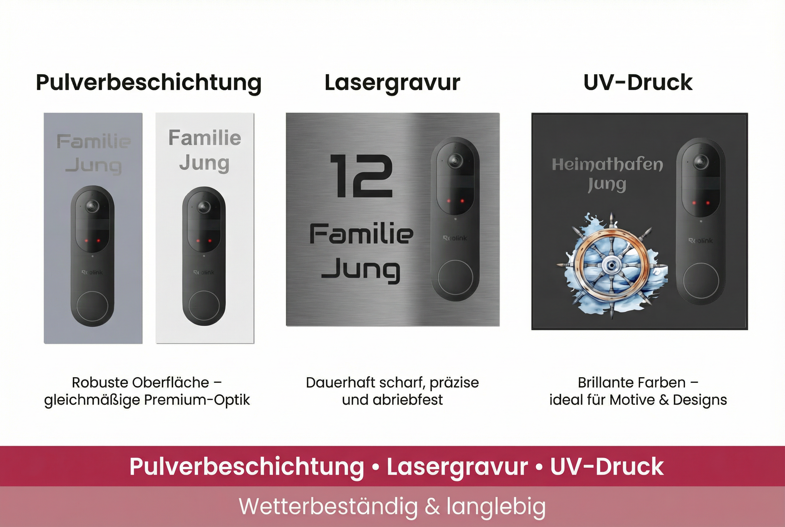 Hochwertiges V2A Edelstahl Dekorschild für Reolink Video Doorbell